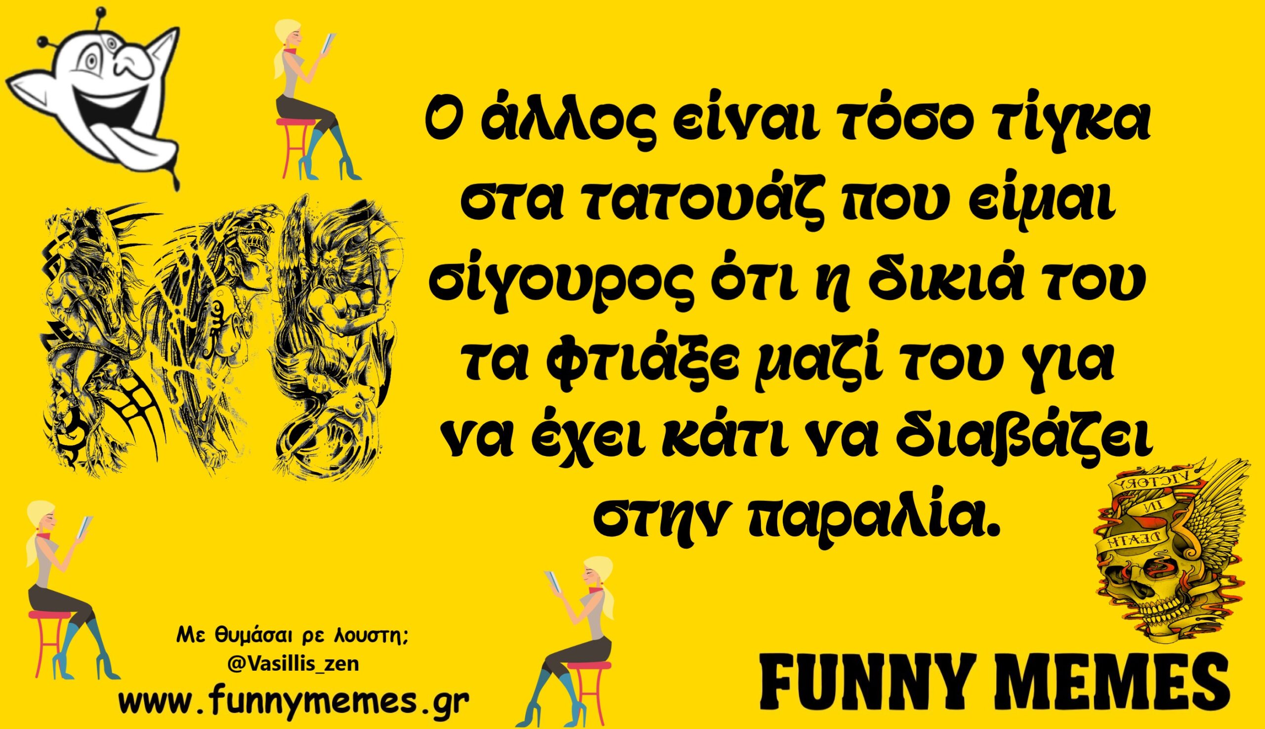- Αγορές Αναδρομές Για παντρεμένους Για τα ζώα Για τα παιδιά Για τη μαμά Για τον μπαμπά Για χωρισμένους Δημοσιογραφία Εργασιακά Καλές πράξεις Μακάβρια Πολιτική Σοφά λόγια Σόκιν Τα αθλητικά Τα αντρικά Τα εγκληματικά Τα εργασιακά Τα ιατρικά Τα ιστορικά Τα καλλιτεχνικά Τα κατεψυγμένα Τα μακάβρια Τα μεταφυσικά Τα σόκιν Τα τεχνολογικά Τα φοιτητικά Τα ψεκασμένα Της διασκέδασης Της κρίσης Του έρωτα Τσίου memes Φωτορεπορτάζ