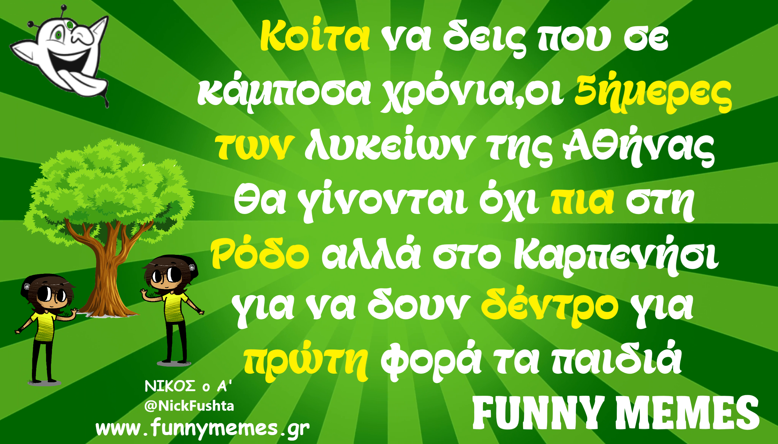 - Αγορές Αναδρομές Για παντρεμένους Για τα ζώα Για τα παιδιά Για τη μαμά Για τον μπαμπά Για χωρισμένους Δημοσιογραφία Εργασιακά Καλές πράξεις Μακάβρια Πολιτική Σοφά λόγια Σόκιν Τα αθλητικά Τα αντρικά Τα εγκληματικά Τα εργασιακά Τα ιατρικά Τα ιστορικά Τα καλλιτεχνικά Τα κατεψυγμένα Τα μακάβρια Τα μεταφυσικά Τα σόκιν Τα τεχνολογικά Τα φοιτητικά Τα ψεκασμένα Της διασκέδασης Της κρίσης Του έρωτα Τσίου memes Φωτορεπορτάζ