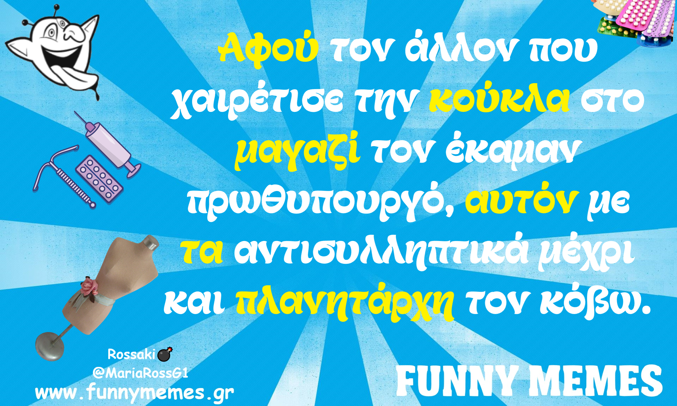 - Αγορές Αναδρομές Για παντρεμένους Για τα ζώα Για τα παιδιά Για τη μαμά Για τον μπαμπά Για χωρισμένους Δημοσιογραφία Εργασιακά Καλές πράξεις Μακάβρια Πολιτική Σοφά λόγια Σόκιν Τα αθλητικά Τα αντρικά Τα εγκληματικά Τα εργασιακά Τα ιατρικά Τα ιστορικά Τα καλλιτεχνικά Τα κατεψυγμένα Τα μακάβρια Τα μεταφυσικά Τα σόκιν Τα τεχνολογικά Τα φοιτητικά Τα ψεκασμένα Της διασκέδασης Της κρίσης Του έρωτα Τσίου memes Φωτορεπορτάζ