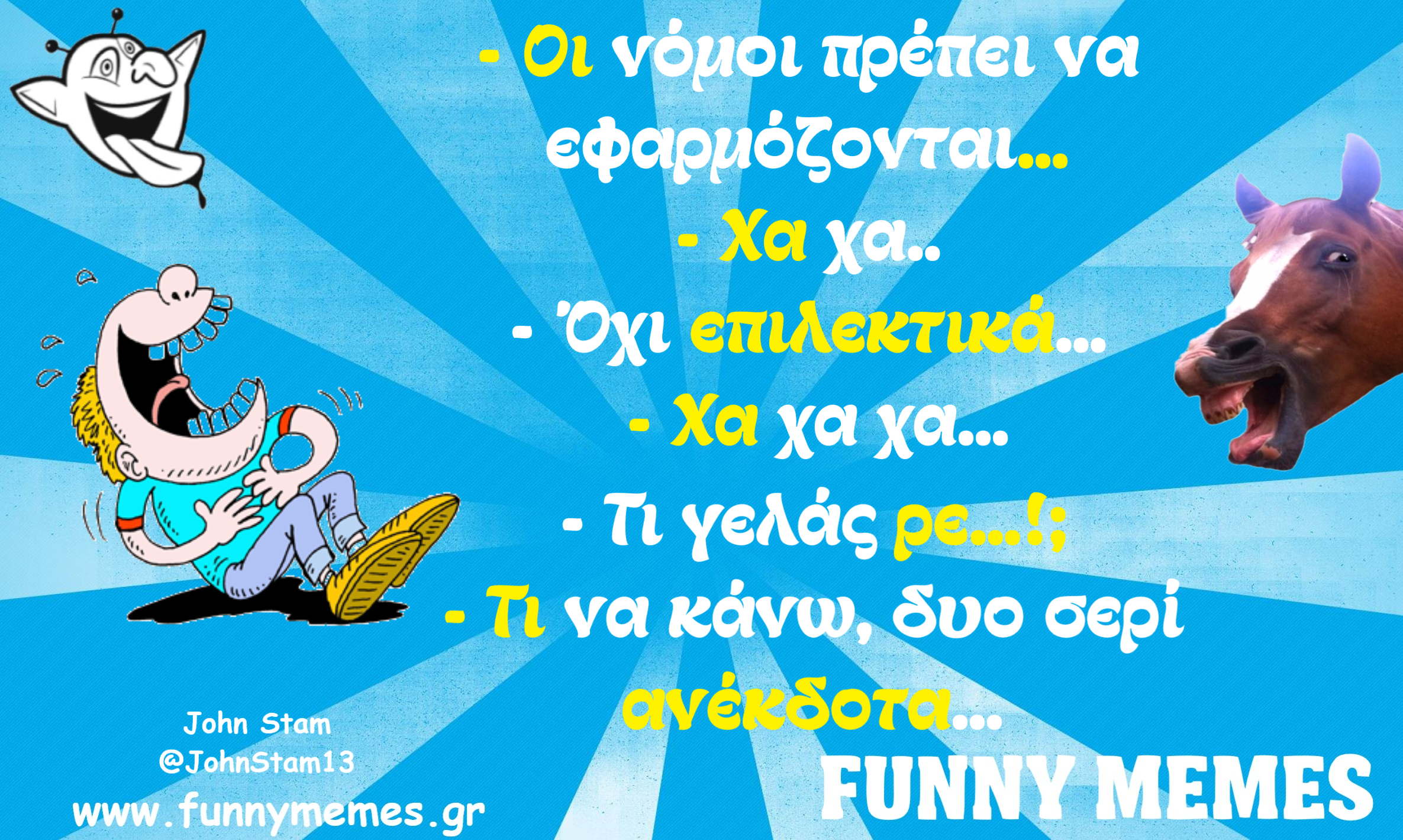- Αγορές Αναδρομές Για παντρεμένους Για τα ζώα Για τα παιδιά Για τη μαμά Για τον μπαμπά Για χωρισμένους Δημοσιογραφία Εργασιακά Καλές πράξεις Μακάβρια Πολιτική Σοφά λόγια Σόκιν Τα αθλητικά Τα αντρικά Τα εγκληματικά Τα εργασιακά Τα ιατρικά Τα ιστορικά Τα καλλιτεχνικά Τα κατεψυγμένα Τα μακάβρια Τα μεταφυσικά Τα σόκιν Τα τεχνολογικά Τα φοιτητικά Τα ψεκασμένα Της διασκέδασης Της κρίσης Του έρωτα Τσίου memes Φωτορεπορτάζ