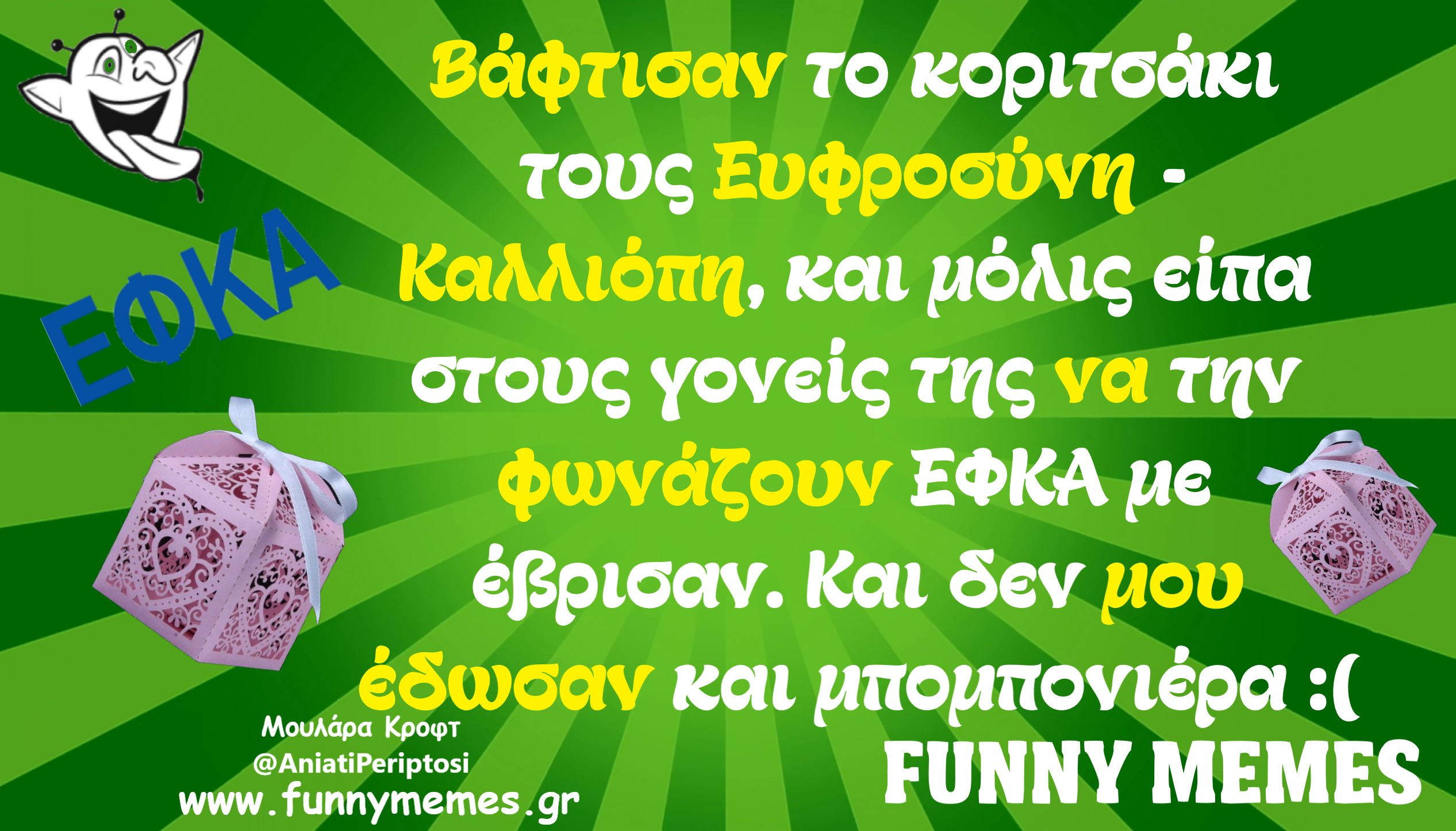 - Αγορές Αναδρομές Για παντρεμένους Για τα ζώα Για τα παιδιά Για τη μαμά Για τον μπαμπά Για χωρισμένους Δημοσιογραφία Εργασιακά Καλές πράξεις Μακάβρια Πολιτική Σοφά λόγια Σόκιν Τα αθλητικά Τα αντρικά Τα εγκληματικά Τα εργασιακά Τα ιατρικά Τα ιστορικά Τα καλλιτεχνικά Τα κατεψυγμένα Τα μακάβρια Τα μεταφυσικά Τα σόκιν Τα τεχνολογικά Τα φοιτητικά Τα ψεκασμένα Της διασκέδασης Της κρίσης Του έρωτα Τσίου memes Φωτορεπορτάζ