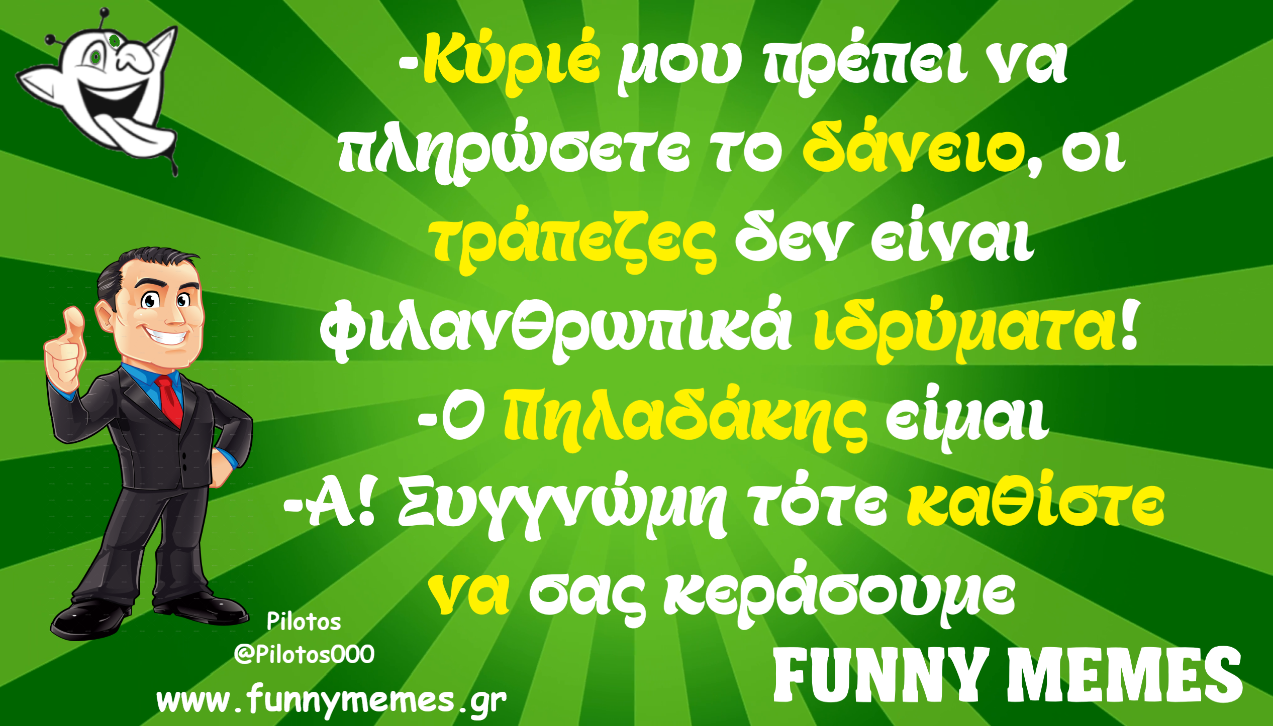 - Αγορές Αναδρομές Για παντρεμένους Για τα ζώα Για τα παιδιά Για τη μαμά Για τον μπαμπά Για χωρισμένους Δημοσιογραφία Εργασιακά Καλές πράξεις Μακάβρια Πολιτική Σοφά λόγια Σόκιν Τα αθλητικά Τα αντρικά Τα εγκληματικά Τα εργασιακά Τα ιατρικά Τα ιστορικά Τα καλλιτεχνικά Τα κατεψυγμένα Τα μακάβρια Τα μεταφυσικά Τα σόκιν Τα τεχνολογικά Τα φοιτητικά Τα ψεκασμένα Της διασκέδασης Της κρίσης Του έρωτα Τσίου memes Φωτορεπορτάζ