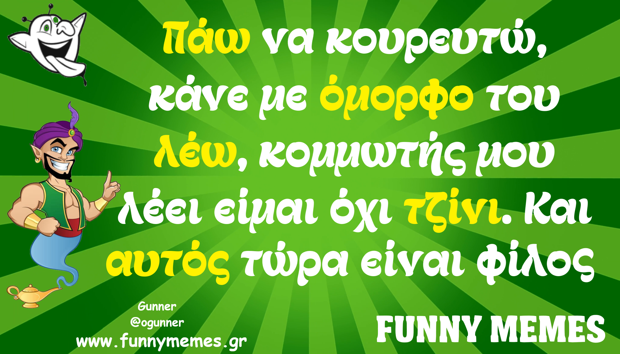 - Αγορές Αναδρομές Για παντρεμένους Για τα ζώα Για τα παιδιά Για τη μαμά Για τον μπαμπά Για χωρισμένους Δημοσιογραφία Εργασιακά Καλές πράξεις Μακάβρια Πολιτική Σοφά λόγια Σόκιν Τα αθλητικά Τα αντρικά Τα εγκληματικά Τα εργασιακά Τα ιατρικά Τα ιστορικά Τα καλλιτεχνικά Τα κατεψυγμένα Τα μακάβρια Τα μεταφυσικά Τα σόκιν Τα τεχνολογικά Τα φοιτητικά Τα ψεκασμένα Της διασκέδασης Της κρίσης Του έρωτα Τσίου memes Φωτορεπορτάζ