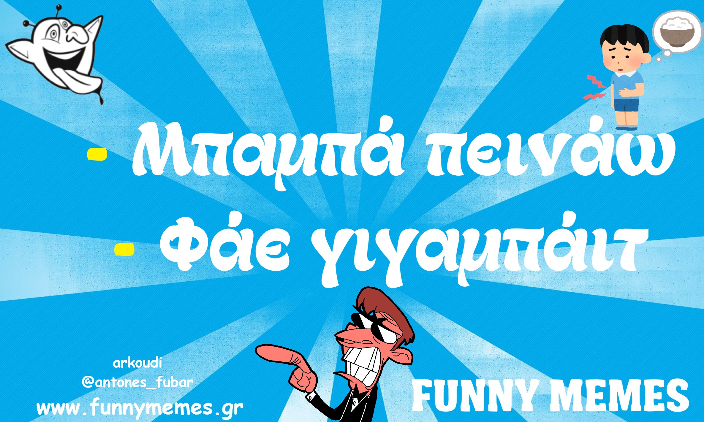- Αγορές Αναδρομές Για παντρεμένους Για τα ζώα Για τα παιδιά Για τη μαμά Για τον μπαμπά Για χωρισμένους Δημοσιογραφία Εργασιακά Καλές πράξεις Μακάβρια Πολιτική Σοφά λόγια Σόκιν Τα αθλητικά Τα αντρικά Τα εγκληματικά Τα εργασιακά Τα ιατρικά Τα ιστορικά Τα καλλιτεχνικά Τα κατεψυγμένα Τα μακάβρια Τα μεταφυσικά Τα σόκιν Τα τεχνολογικά Τα φοιτητικά Τα ψεκασμένα Της διασκέδασης Της κρίσης Του έρωτα Τσίου memes Φωτορεπορτάζ