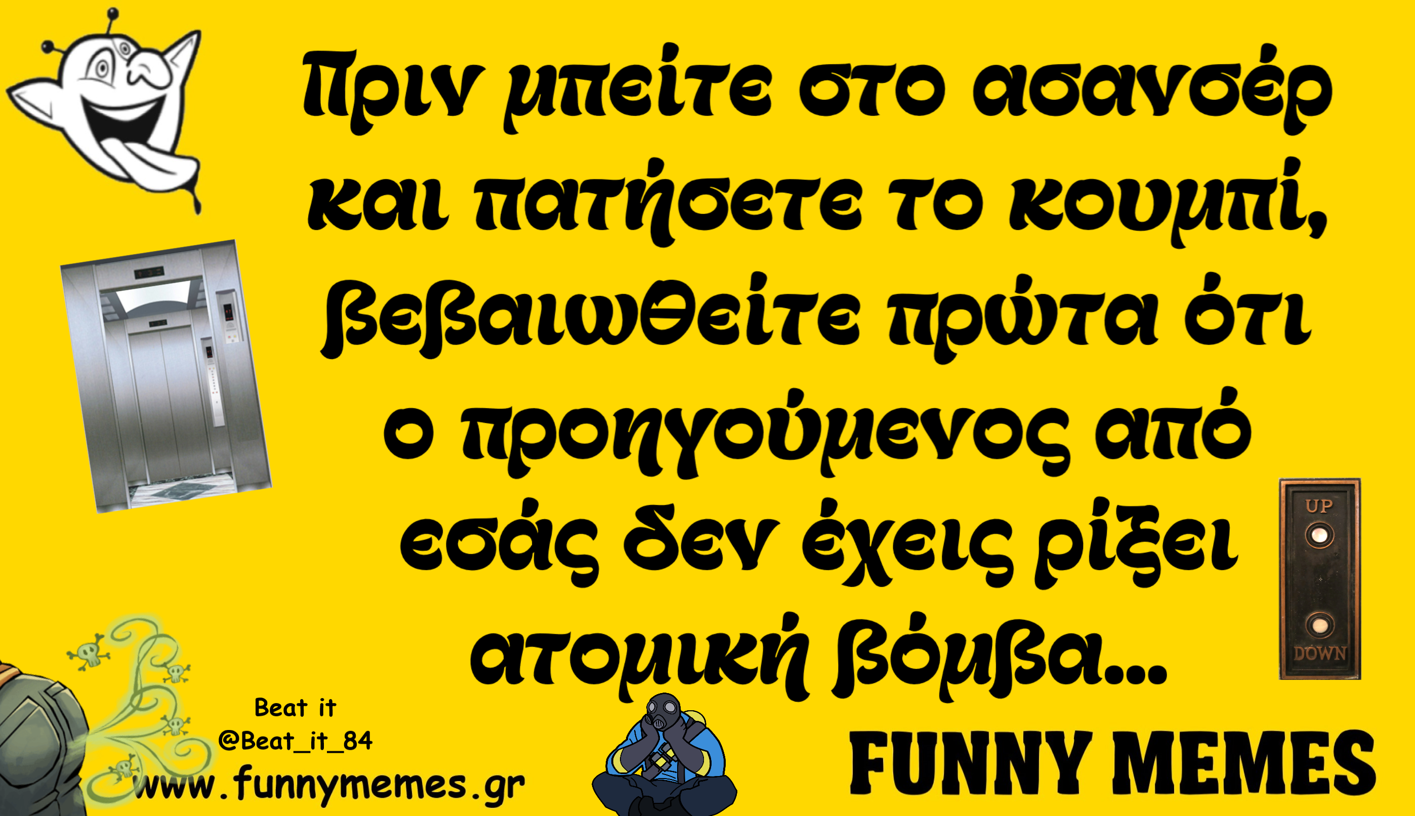 - Αγορές Αναδρομές Για παντρεμένους Για τα ζώα Για τα παιδιά Για τη μαμά Για τον μπαμπά Για χωρισμένους Δημοσιογραφία Εργασιακά Καλές πράξεις Μακάβρια Πολιτική Σοφά λόγια Σόκιν Τα αθλητικά Τα αντρικά Τα εγκληματικά Τα εργασιακά Τα ιατρικά Τα ιστορικά Τα καλλιτεχνικά Τα κατεψυγμένα Τα μακάβρια Τα μεταφυσικά Τα σόκιν Τα τεχνολογικά Τα φοιτητικά Τα ψεκασμένα Της διασκέδασης Της κρίσης Του έρωτα Τσίου memes Φωτορεπορτάζ