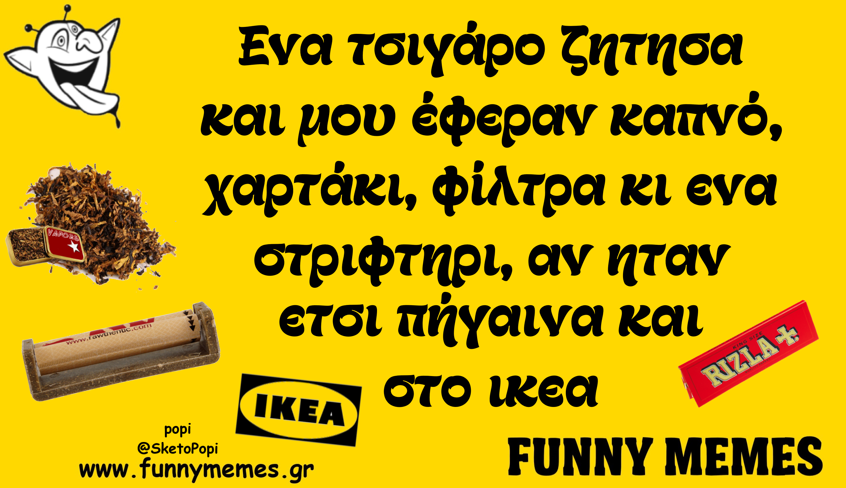 - Αγορές Αναδρομές Για παντρεμένους Για τα ζώα Για τα παιδιά Για τη μαμά Για τον μπαμπά Για χωρισμένους Δημοσιογραφία Εργασιακά Καλές πράξεις Μακάβρια Πολιτική Σοφά λόγια Σόκιν Τα αθλητικά Τα αντρικά Τα εγκληματικά Τα εργασιακά Τα ιατρικά Τα ιστορικά Τα καλλιτεχνικά Τα κατεψυγμένα Τα μακάβρια Τα μεταφυσικά Τα σόκιν Τα τεχνολογικά Τα φοιτητικά Τα ψεκασμένα Της διασκέδασης Της κρίσης Του έρωτα Τσίου memes Φωτορεπορτάζ