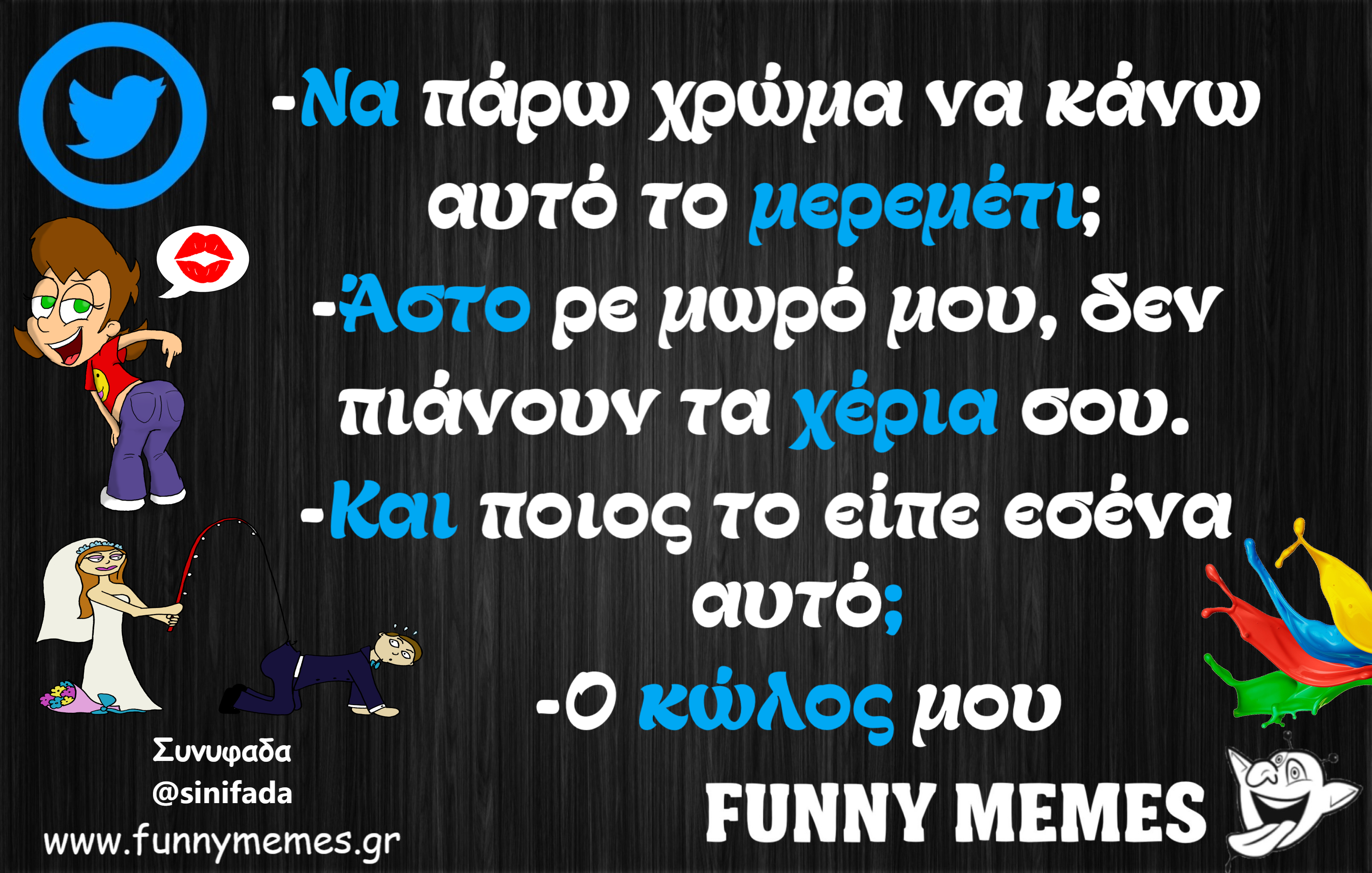 - Αγορές Αναδρομές Για παντρεμένους Για τα ζώα Για τα παιδιά Για τη μαμά Για τον μπαμπά Για χωρισμένους Δημοσιογραφία Εργασιακά Καλές πράξεις Μακάβρια Πολιτική Σοφά λόγια Σόκιν Τα αθλητικά Τα αντρικά Τα εγκληματικά Τα εργασιακά Τα ιατρικά Τα ιστορικά Τα καλλιτεχνικά Τα κατεψυγμένα Τα μακάβρια Τα μεταφυσικά Τα σόκιν Τα τεχνολογικά Τα φοιτητικά Τα ψεκασμένα Της διασκέδασης Της κρίσης Του έρωτα Τσίου memes Φωτορεπορτάζ
