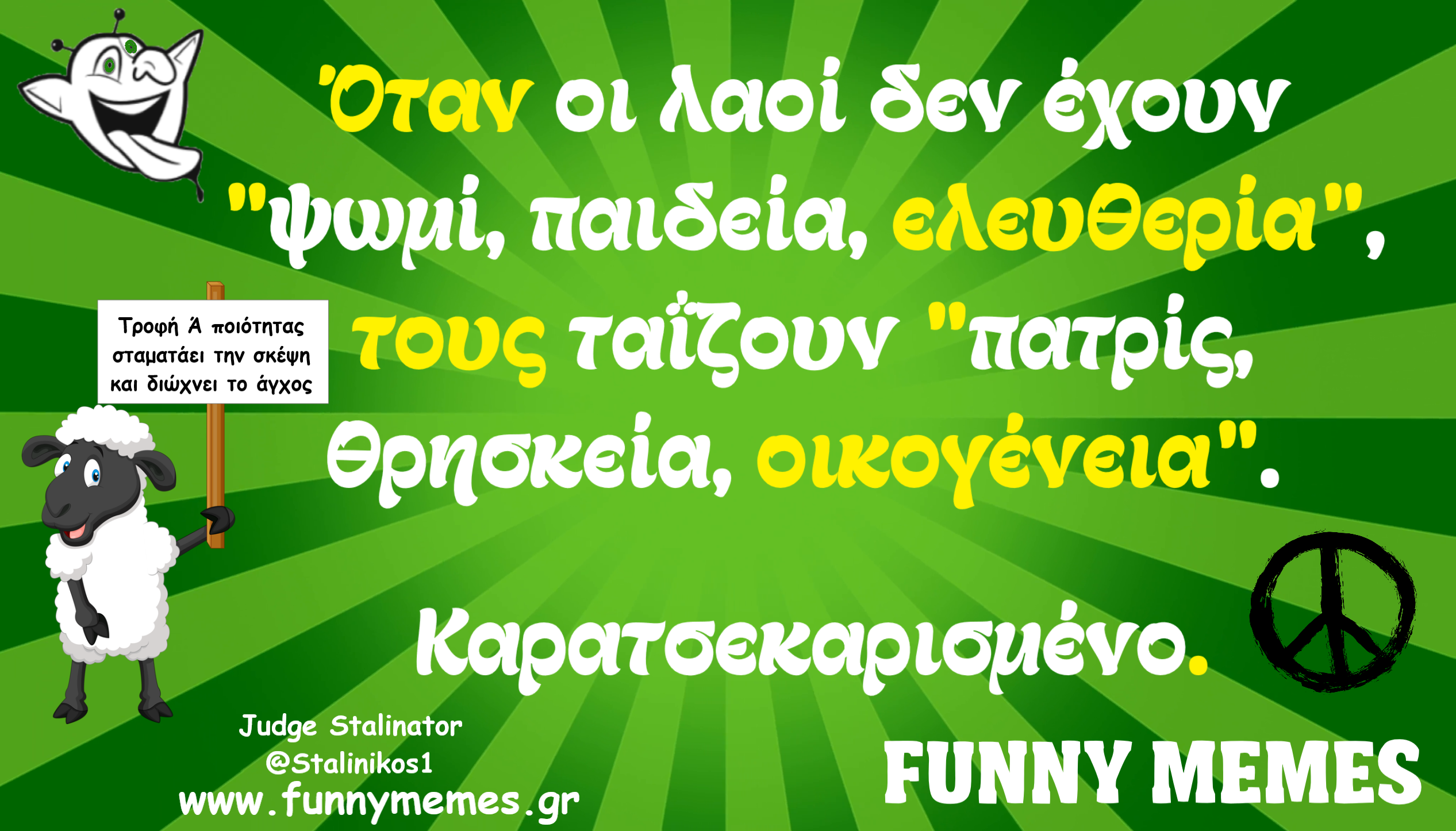 - Αγορές Αναδρομές Για παντρεμένους Για τα ζώα Για τα παιδιά Για τη μαμά Για τον μπαμπά Για χωρισμένους Δημοσιογραφία Εργασιακά Καλές πράξεις Μακάβρια Πολιτική Σοφά λόγια Σόκιν Τα αθλητικά Τα αντρικά Τα εγκληματικά Τα εργασιακά Τα ιατρικά Τα ιστορικά Τα καλλιτεχνικά Τα κατεψυγμένα Τα μακάβρια Τα μεταφυσικά Τα σόκιν Τα τεχνολογικά Τα φοιτητικά Τα ψεκασμένα Της διασκέδασης Της κρίσης Του έρωτα Τσίου memes Φωτορεπορτάζ
