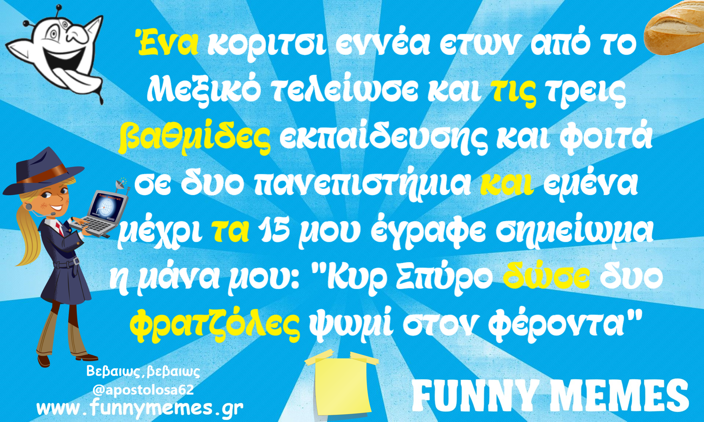 - Αγορές Αναδρομές Για παντρεμένους Για τα ζώα Για τα παιδιά Για τη μαμά Για τον μπαμπά Για χωρισμένους Δημοσιογραφία Εργασιακά Καλές πράξεις Μακάβρια Πολιτική Σοφά λόγια Σόκιν Τα αθλητικά Τα αντρικά Τα εγκληματικά Τα εργασιακά Τα ιατρικά Τα ιστορικά Τα καλλιτεχνικά Τα κατεψυγμένα Τα μακάβρια Τα μεταφυσικά Τα σόκιν Τα τεχνολογικά Τα φοιτητικά Τα ψεκασμένα Της διασκέδασης Της κρίσης Του έρωτα Τσίου memes Φωτορεπορτάζ