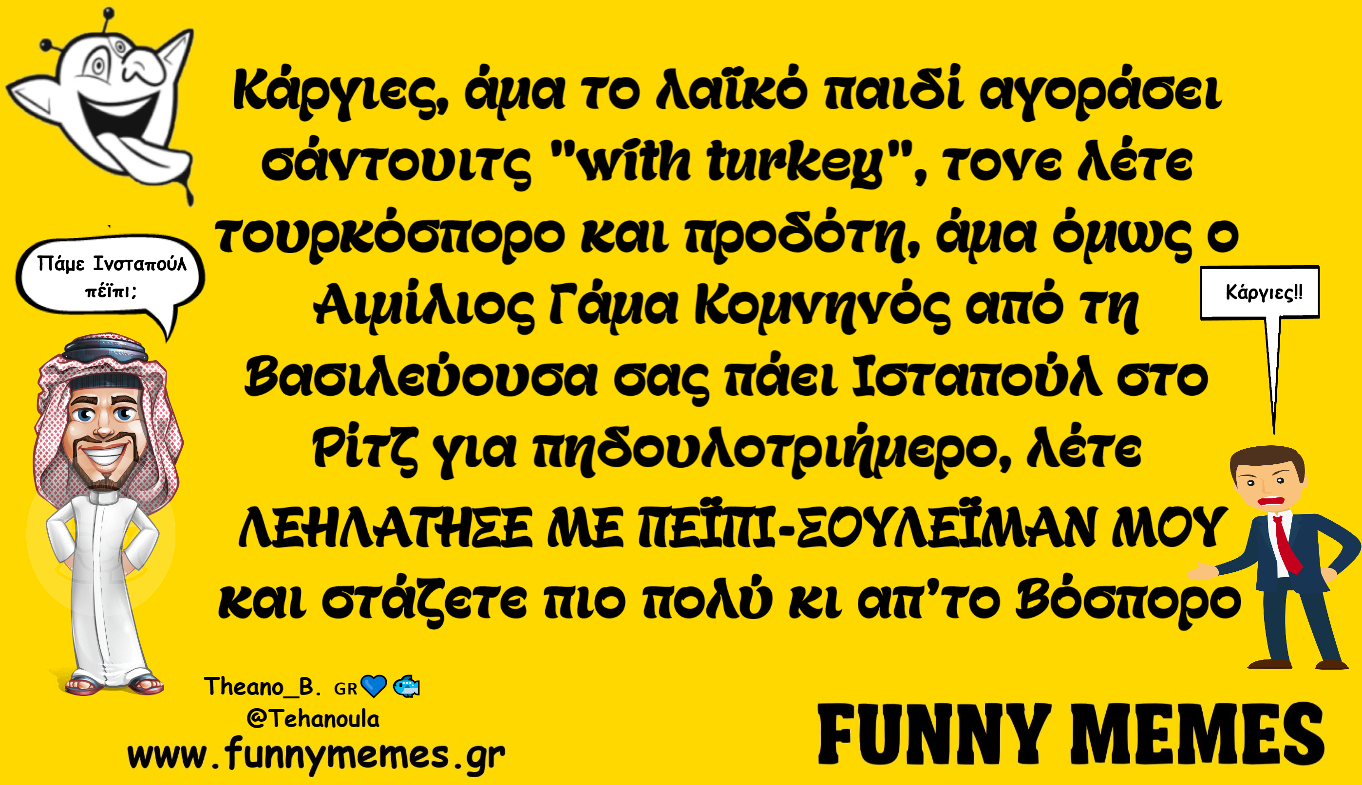 - Αγορές Αναδρομές Για παντρεμένους Για τα ζώα Για τα παιδιά Για τη μαμά Για τον μπαμπά Για χωρισμένους Δημοσιογραφία Εργασιακά Καλές πράξεις Μακάβρια Πολιτική Σοφά λόγια Σόκιν Τα αθλητικά Τα αντρικά Τα εγκληματικά Τα εργασιακά Τα ιατρικά Τα ιστορικά Τα καλλιτεχνικά Τα κατεψυγμένα Τα μακάβρια Τα μεταφυσικά Τα σόκιν Τα τεχνολογικά Τα φοιτητικά Τα ψεκασμένα Της διασκέδασης Της κρίσης Του έρωτα Τσίου memes Φωτορεπορτάζ