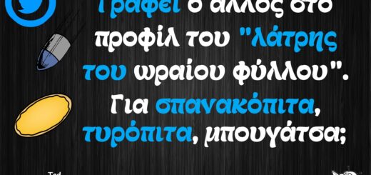 - Αγορές Αναδρομές Για παντρεμένους Για τα ζώα Για τα παιδιά Για τη μαμά Για τον μπαμπά Για χωρισμένους Δημοσιογραφία Εργασιακά Καλές πράξεις Μακάβρια Πολιτική Σοφά λόγια Σόκιν Τα αθλητικά Τα αντρικά Τα εγκληματικά Τα εργασιακά Τα ιατρικά Τα ιστορικά Τα καλλιτεχνικά Τα κατεψυγμένα Τα μακάβρια Τα μεταφυσικά Τα σόκιν Τα τεχνολογικά Τα φοιτητικά Τα ψεκασμένα Της διασκέδασης Της κρίσης Του έρωτα Τσίου memes Φωτορεπορτάζ