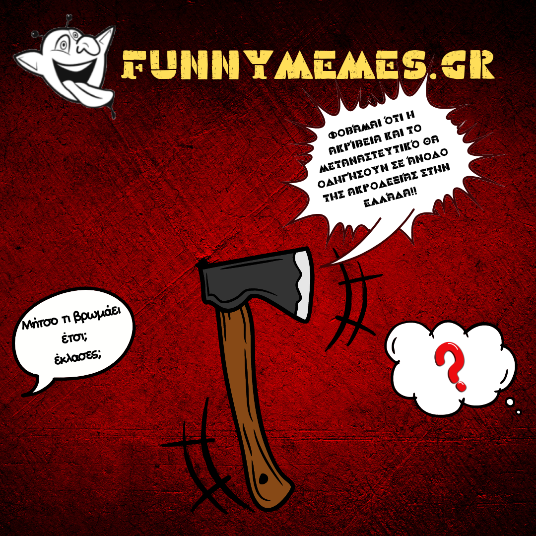 - Αγορές Αναδρομές Για παντρεμένους Για τα ζώα Για τα παιδιά Για τη μαμά Για τον μπαμπά Για χωρισμένους Δημοσιογραφία Εργασιακά Καλές πράξεις Μακάβρια Πολιτική Σοφά λόγια Σόκιν Τα αθλητικά Τα αντρικά Τα εγκληματικά Τα εργασιακά Τα ιατρικά Τα ιστορικά Τα καλλιτεχνικά Τα κατεψυγμένα Τα μακάβρια Τα μεταφυσικά Τα σόκιν Τα τεχνολογικά Τα φοιτητικά Τα ψεκασμένα Της διασκέδασης Της κρίσης Του έρωτα Τσίου memes Φωτορεπορτάζ