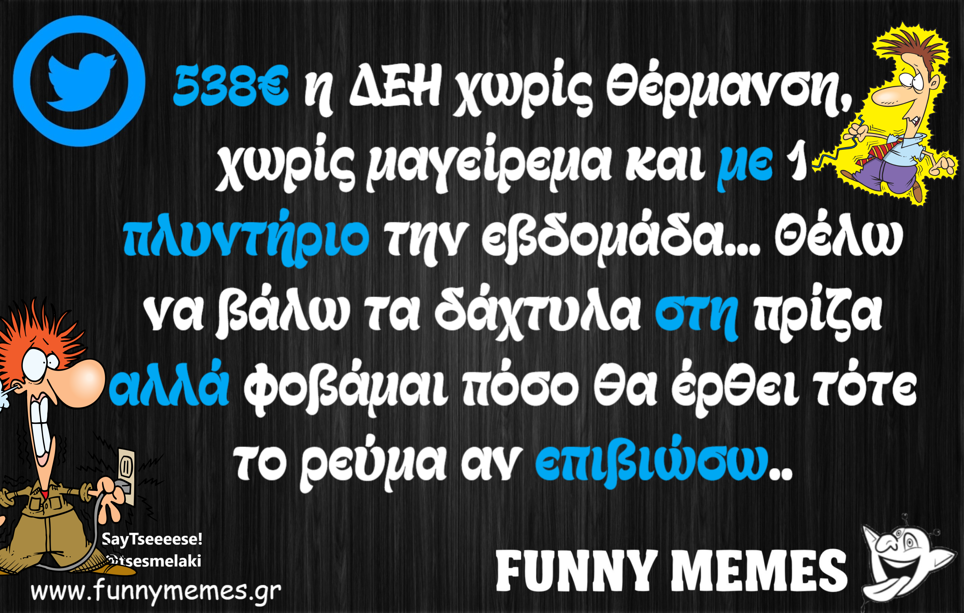 - Αγορές Αναδρομές Για παντρεμένους Για τα ζώα Για τα παιδιά Για τη μαμά Για τον μπαμπά Για χωρισμένους Δημοσιογραφία Εργασιακά Καλές πράξεις Μακάβρια Πολιτική Σοφά λόγια Σόκιν Τα αθλητικά Τα αντρικά Τα εγκληματικά Τα εργασιακά Τα ιατρικά Τα ιστορικά Τα καλλιτεχνικά Τα κατεψυγμένα Τα μακάβρια Τα μεταφυσικά Τα σόκιν Τα τεχνολογικά Τα φοιτητικά Τα ψεκασμένα Της διασκέδασης Της κρίσης Του έρωτα Τσίου memes Φωτορεπορτάζ