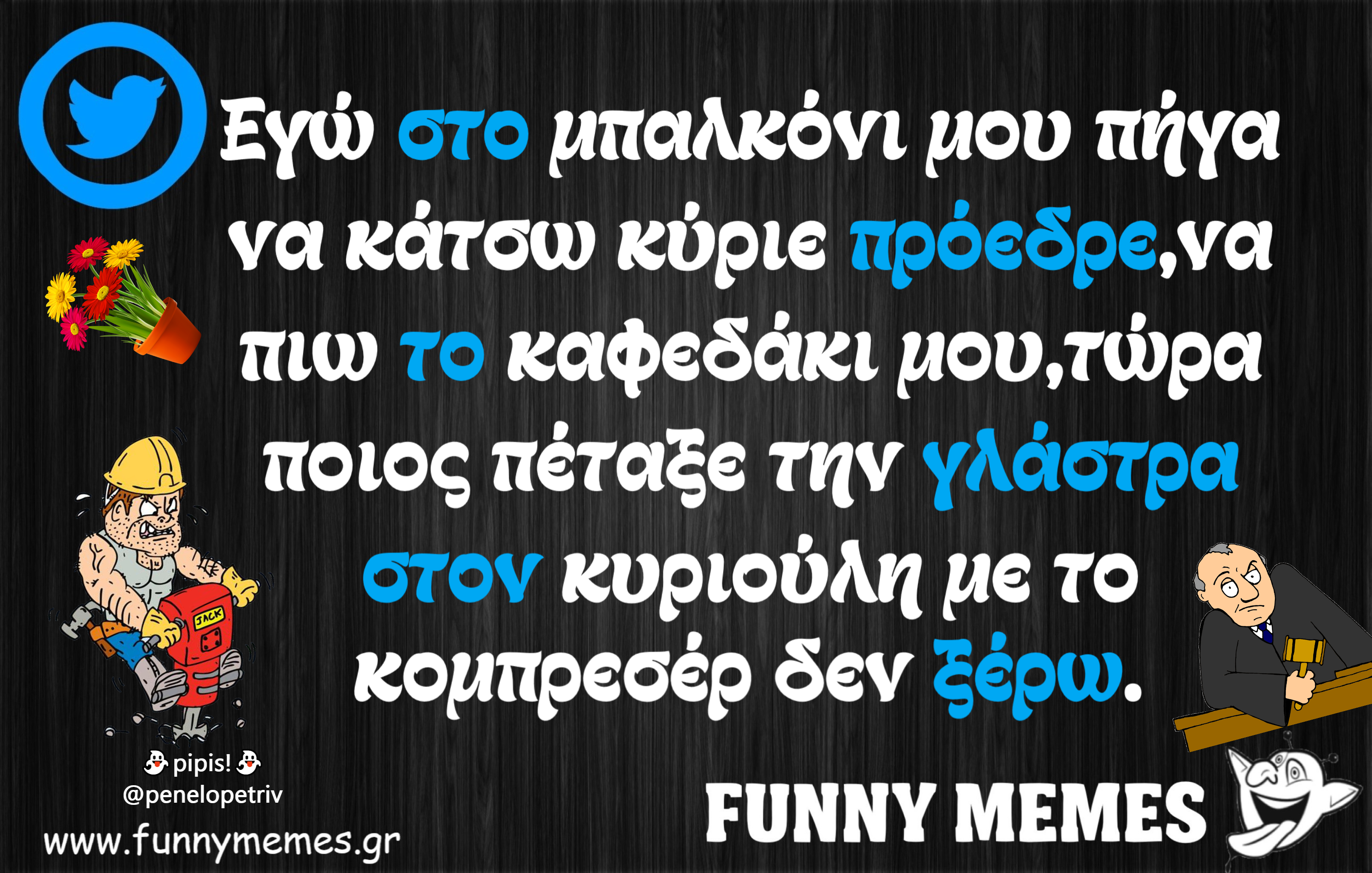 - Αγορές Αναδρομές Για παντρεμένους Για τα ζώα Για τα παιδιά Για τη μαμά Για τον μπαμπά Για χωρισμένους Δημοσιογραφία Εργασιακά Καλές πράξεις Μακάβρια Πολιτική Σοφά λόγια Σόκιν Τα αθλητικά Τα αντρικά Τα εγκληματικά Τα εργασιακά Τα ιατρικά Τα ιστορικά Τα καλλιτεχνικά Τα κατεψυγμένα Τα μακάβρια Τα μεταφυσικά Τα σόκιν Τα τεχνολογικά Τα φοιτητικά Τα ψεκασμένα Της διασκέδασης Της κρίσης Του έρωτα Τσίου memes Φωτορεπορτάζ