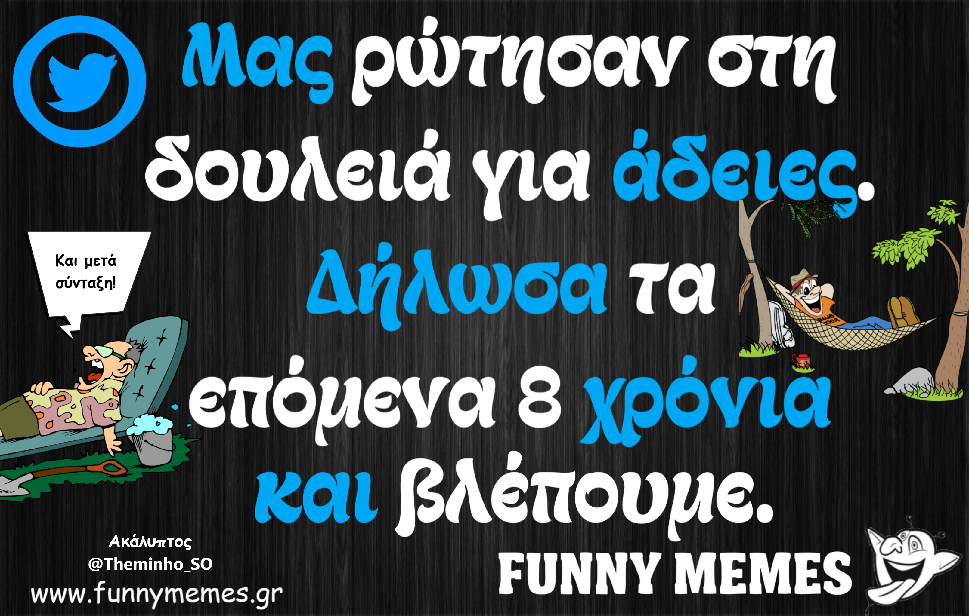 - Αγορές Αναδρομές Για παντρεμένους Για τα ζώα Για τα παιδιά Για τη μαμά Για τον μπαμπά Για χωρισμένους Δημοσιογραφία Εργασιακά Καλές πράξεις Μακάβρια Πολιτική Σοφά λόγια Σόκιν Τα αθλητικά Τα αντρικά Τα εγκληματικά Τα εργασιακά Τα ιατρικά Τα ιστορικά Τα καλλιτεχνικά Τα κατεψυγμένα Τα μακάβρια Τα μεταφυσικά Τα σόκιν Τα τεχνολογικά Τα φοιτητικά Τα ψεκασμένα Της διασκέδασης Της κρίσης Του έρωτα Τσίου memes Φωτορεπορτάζ