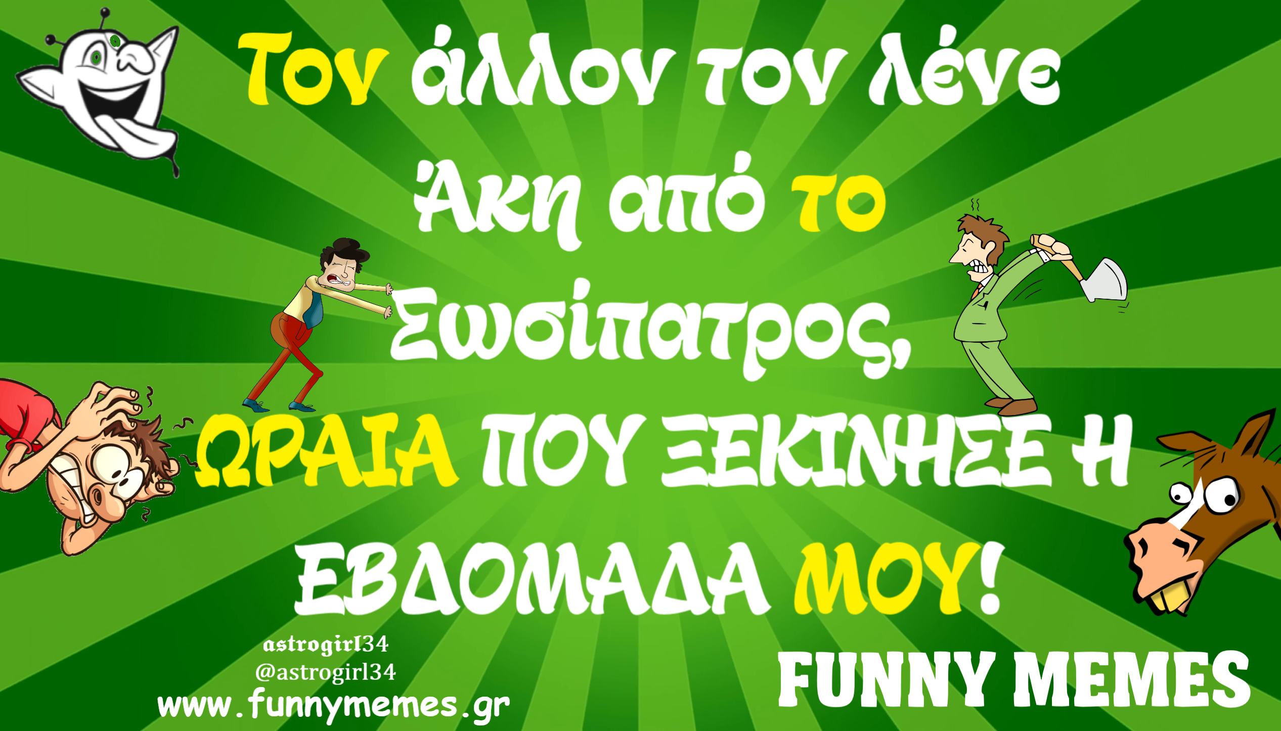 - Αγορές Αναδρομές Για παντρεμένους Για τα ζώα Για τα παιδιά Για τη μαμά Για τον μπαμπά Για χωρισμένους Δημοσιογραφία Εργασιακά Καλές πράξεις Μακάβρια Πολιτική Σοφά λόγια Σόκιν Τα αθλητικά Τα αντρικά Τα εγκληματικά Τα εργασιακά Τα ιατρικά Τα ιστορικά Τα καλλιτεχνικά Τα κατεψυγμένα Τα μακάβρια Τα μεταφυσικά Τα σόκιν Τα τεχνολογικά Τα φοιτητικά Τα ψεκασμένα Της διασκέδασης Της κρίσης Του έρωτα Τσίου memes Φωτορεπορτάζ
