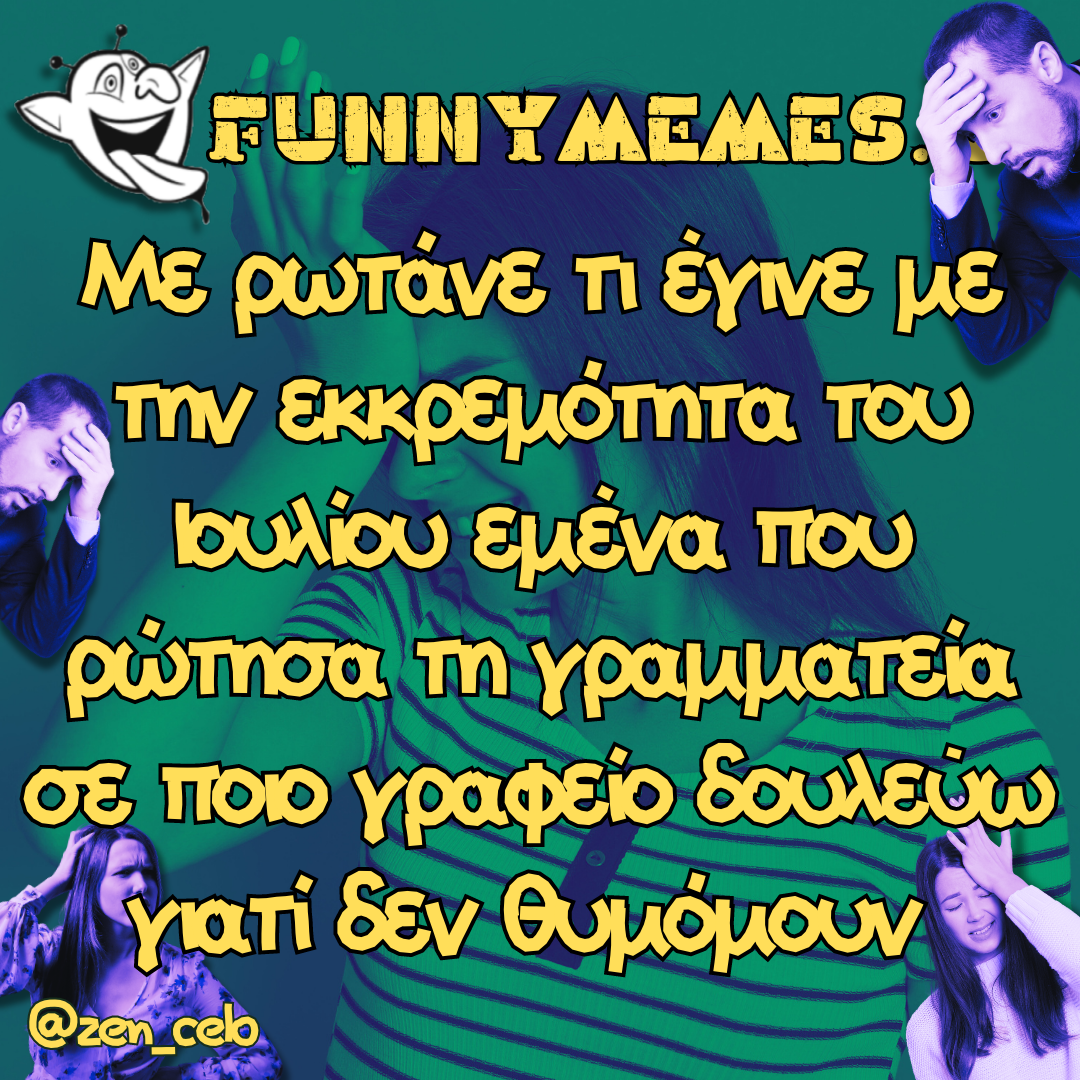 - Αγορές Αναδρομές Για παντρεμένους Για τα ζώα Για τα παιδιά Για τη μαμά Για τον μπαμπά Για χωρισμένους Δημοσιογραφία Εργασιακά Καλές πράξεις Μακάβρια Πολιτική Σοφά λόγια Σόκιν Τα αθλητικά Τα αντρικά Τα εγκληματικά Τα εργασιακά Τα ιατρικά Τα ιστορικά Τα καλλιτεχνικά Τα κατεψυγμένα Τα μακάβρια Τα μεταφυσικά Τα σόκιν Τα τεχνολογικά Τα φοιτητικά Τα ψεκασμένα Της διασκέδασης Της κρίσης Του έρωτα Τσίου memes Φωτορεπορτάζ