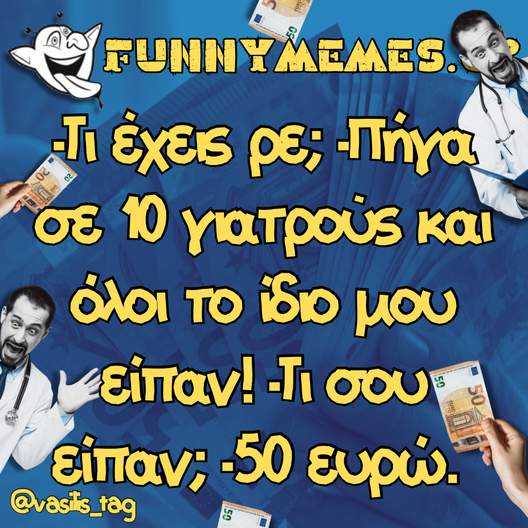 - Αγορές Αναδρομές Για παντρεμένους Για τα ζώα Για τα παιδιά Για τη μαμά Για τον μπαμπά Για χωρισμένους Δημοσιογραφία Εργασιακά Καλές πράξεις Μακάβρια Πολιτική Σοφά λόγια Σόκιν Τα αθλητικά Τα αντρικά Τα εγκληματικά Τα εργασιακά Τα ιατρικά Τα ιστορικά Τα καλλιτεχνικά Τα κατεψυγμένα Τα μακάβρια Τα μεταφυσικά Τα σόκιν Τα τεχνολογικά Τα φοιτητικά Τα ψεκασμένα Της διασκέδασης Της κρίσης Του έρωτα Τσίου memes Φωτορεπορτάζ
