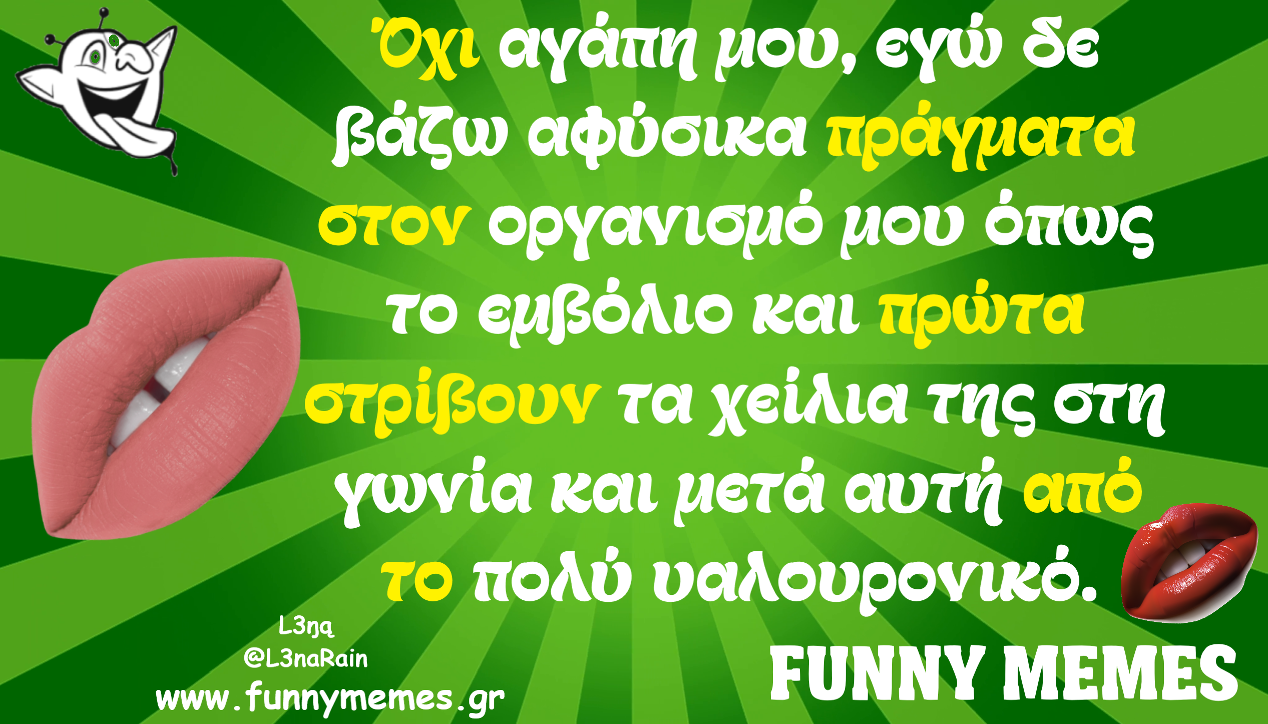 - Αγορές Αναδρομές Για παντρεμένους Για τα ζώα Για τα παιδιά Για τη μαμά Για τον μπαμπά Για χωρισμένους Δημοσιογραφία Εργασιακά Καλές πράξεις Μακάβρια Πολιτική Σοφά λόγια Σόκιν Τα αθλητικά Τα αντρικά Τα εγκληματικά Τα εργασιακά Τα ιατρικά Τα ιστορικά Τα καλλιτεχνικά Τα κατεψυγμένα Τα μακάβρια Τα μεταφυσικά Τα σόκιν Τα τεχνολογικά Τα φοιτητικά Τα ψεκασμένα Της διασκέδασης Της κρίσης Του έρωτα Τσίου memes Φωτορεπορτάζ